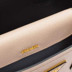 Prada Small Saffiano Leather Double Prada Bag in Powder Pink