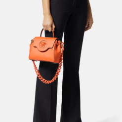 Crafted in Italy from premium leather, Versace’s latest handbag is adorned with a Medusa plaque – the same décor that was discovered on the doors of the brand’s first headquarters in Milan. The slouchy silhouette can be styled on the wrist or across the shoulder, featuring two detachable shoulderstraps: one leather and one chain.