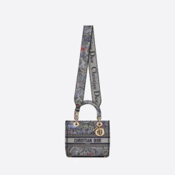 The Lady D-Lite bag combines classic elegance with House modernity. The style is fully embroidered with a denim multicolor Dior Jardin Magique motif, revealing a bucolic and enchanting design inspired by a magical world. The front features a ‘CHRISTIAN DIOR PARIS’ signature, while pale gold-finish metal ‘D.I.O.R.’ charms enhance and illuminate the silhouette. Equipped with a wide, reversible and removable embroidered shoulder strap, the medium Lady D-Lite bag can be carried by hand or worn crossbody.