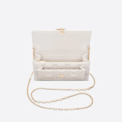 The Lady Dior bag embodies the House’s vision of elegance and beauty. Crafted in black Cannage calfskin with a Diamond motif, its iconic silhouette is embellished with tonal metal ‘D.I.O.R.’ charms. The micro Lady Dior bag can accommodate all the small essentials. Thanks to top handles and an adjustable and removable shoulder strap, the versatile style can be carried by hand, worn over the shoulder or crossbody.
