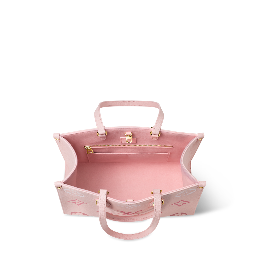 This OnTheGo MM tote bag is made from Monogram Empreinte leather with a gradient Monogram pattern that fades as it approaches the handles. Roomy enough for a laptop, this medium-sized tote is an ideal everyday bag. The OnTheGo has two sets of handles: rolled leather top handles for hand carry as well as a longer pair for shoulder carry.