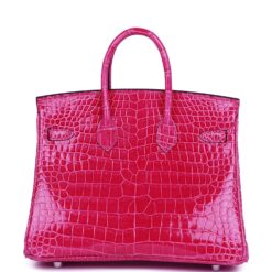 Hermès Birkin 25 Rose Mexico Shiny Porosus Crocodile Palladium Hardware