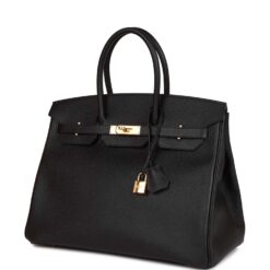This Birkin is of black epsom leather with gold hardware and features tonal stitching,front flap, two straps with center toggle closure, clochette with lock and two keys, and double rolled handles.