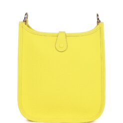 This Evelyne TPM is in Lime clemence leather with palladium hardware and features tonal stitching stitching, pull tab top closure and a quadrille removable canvas and leather shoulder/crossbody strap.