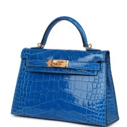 Hermès Kelly Sellier 20 Bleu Zellige Shiny Alligator Gold Hardware