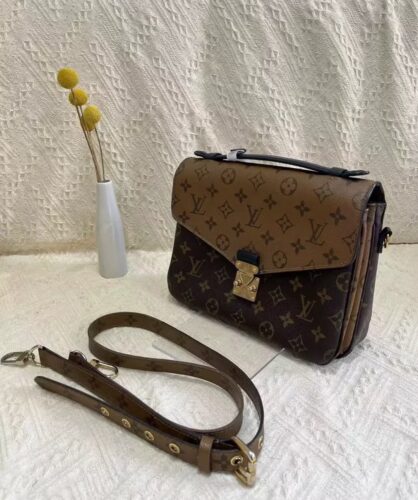 With its distinctive satchel silhouette, the Pochette Métis bag has become an object of fashion desire. This compact, go-everywhere model in trendy Monogram Reverse canvas features a signature S-lock closure with a gleaming gold-tone finish. Versatile and surprisingly roomy, it is fitted with a chic top handle and a long removable strap for shoulder or crossbody wear.